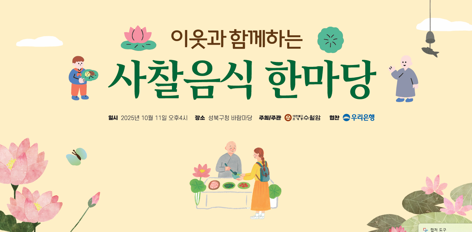 성북구 삼선동 바람마당에서 열린 <2025 이웃과 함께하는 사찰음식 한마당>은 도심 속에서 지친 몸과 마음을 달래고, 건강한 먹거리 문화를 나누는 성북구의 대표적인 힐링 축제 중 하나